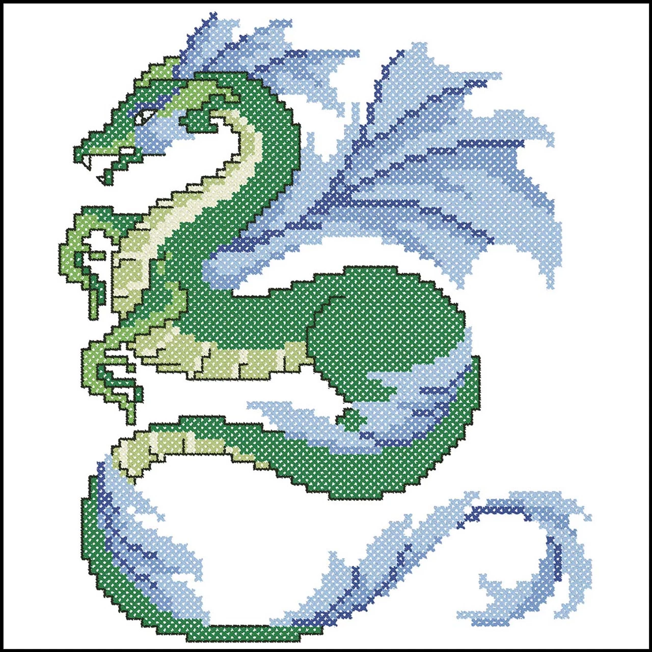 Dream of magical adventures in far away lands as you sleep under these fierce dragons. Stamped for cross-stitch on white polyester/cotton fabric. Six 18 × 18″ (46 x 46cm) blocks. Imported.