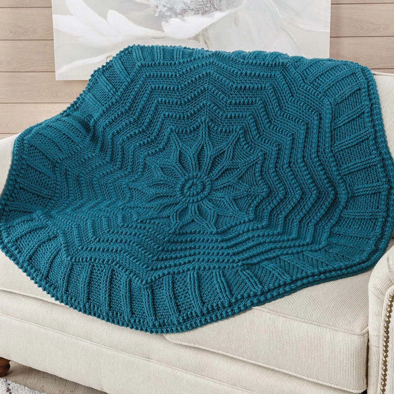 Contrasting texture brings dimension to this modern monochromatic showpiece. This round mandala-inspired design is stitched in a dark teal hue of Premier Basix yarn. Along with the yarn, this kit includes a book with this intermediate crochet pattern, plus 14 crochet projects for mandala-style throws. This 48″ (122cm) dia. design requires a US size H-8 (5mm) and G-6 (4mm) hooks to complete (not included). Imported.